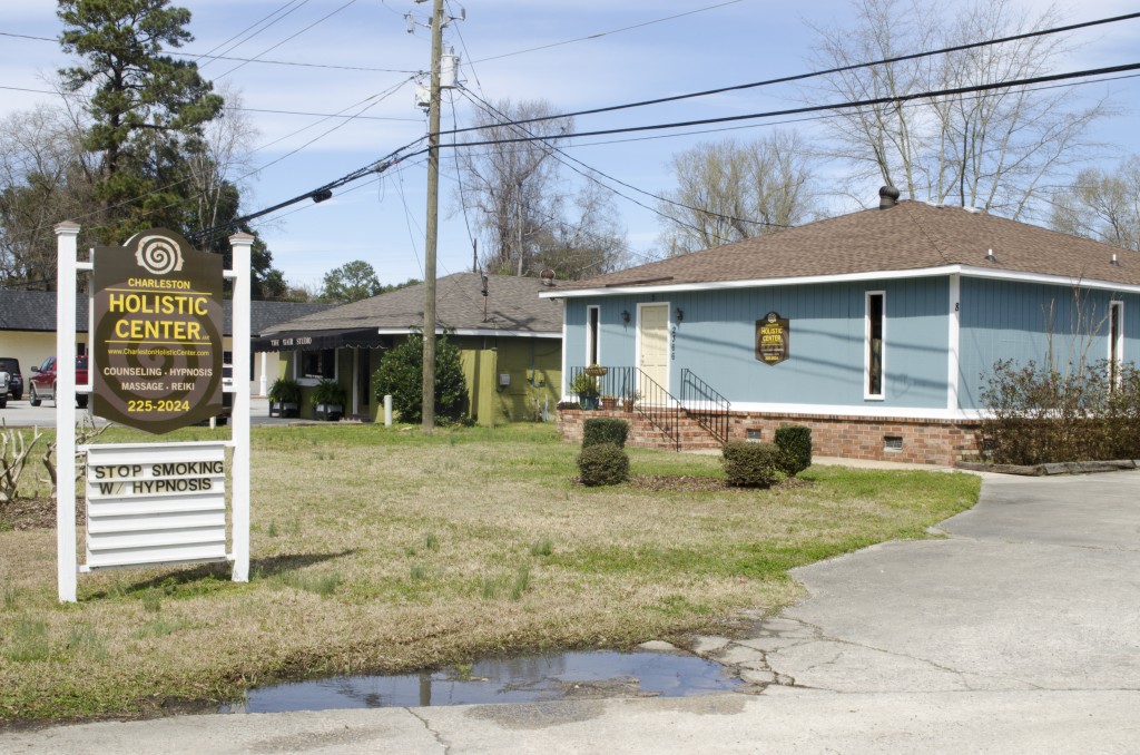 If you zoom in a whole bunch on the map, you’ll see two marks for buildings closer towards Charleston than the marker, we’re actually in the second building from the Sunflower Café. It’s a blue building with white trim and a sand-colored door.
